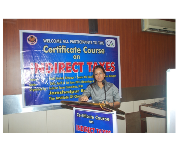 INDIRECT TAX CERTIFICATE COURSE HELD AT CIRC, ICAI, JAMSHEDPUR ON 10/05/2014 & 11/05/2014 Posted on April 27, 2017 adminLeave a commentPosted in Home Slide